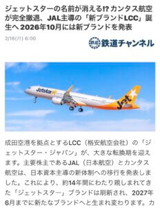 報道によると、カンタス航空が撤退してジェットスタージャパンが無くなるらしい。
